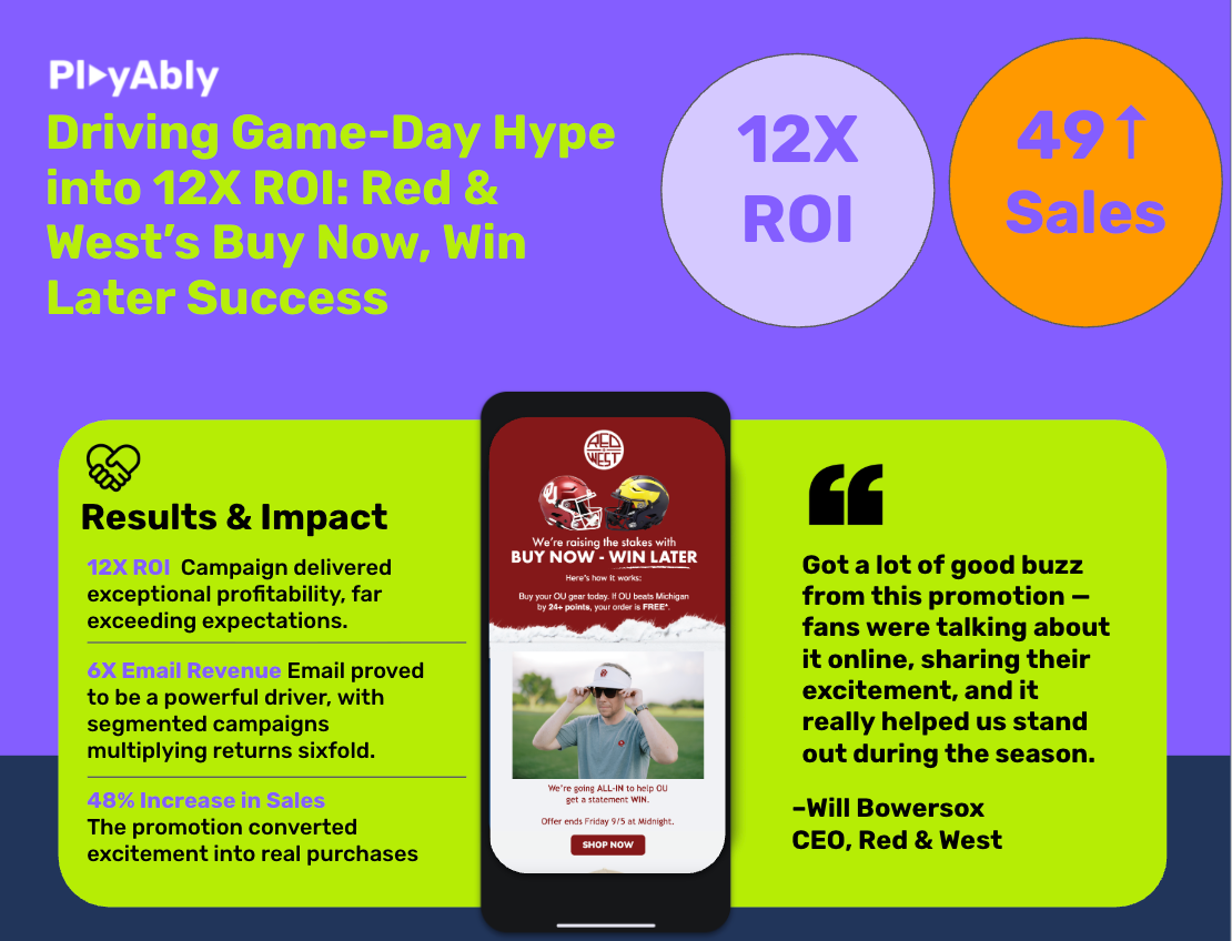 Buy Now, Win Later™ makes every purchase feel like game day. Customers buy, watch the moment, and get a full refund if it hits